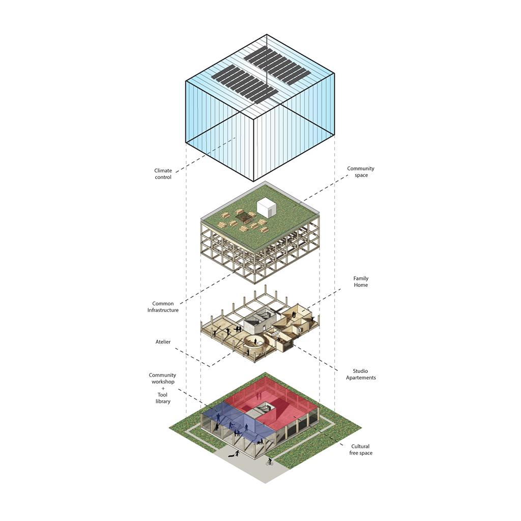 Our proposal emphasizes the development of the city around the idea of the Urban Commons: an accessible, open, democratic platform that provides all the necessary resources for people to shape the city by themselves. Our goal is to promote and strengthen DIY culture and innovation, core features that make Berlin a world capital of creativity and multiculturalism.